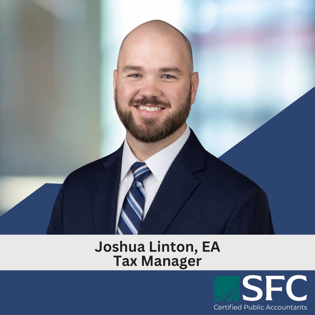 Joshua Linton, EA has been promoted to Tax Manager, effective, January 1, 2026. Joshua joined the firm in 2016 and has over a decade of experience partnering with clients to navigate a wide range of tax matters. He provides clear, practical guidance and helps clients address complex challenges through thoughtful tax compliance and strategic planning.