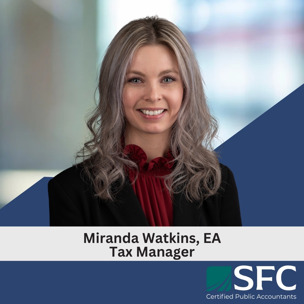 Miranda Watkins, EA, has been promoted to Tax Manager, effective, January 1, 2026. Miranda joined the firm as an intern in 2015 and has since built a broad and well-rounded tax background. She provides tax compliance, planning, technical research, and advisory services, with experience preparing and reviewing a wide range of returns, including individual, partnership, corporate, fiduciary, exempt organization, and multi-state filings.
